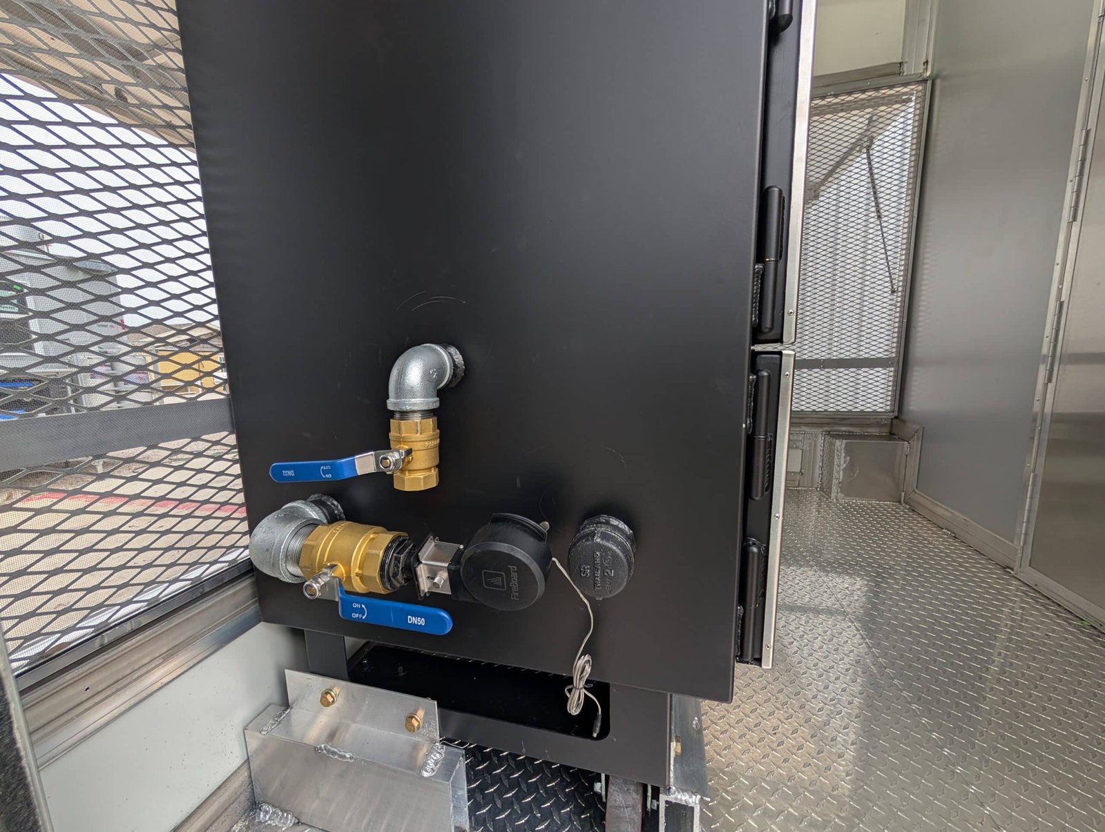 1 3/4″ black gas line with main regulator and shut off valve